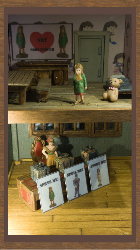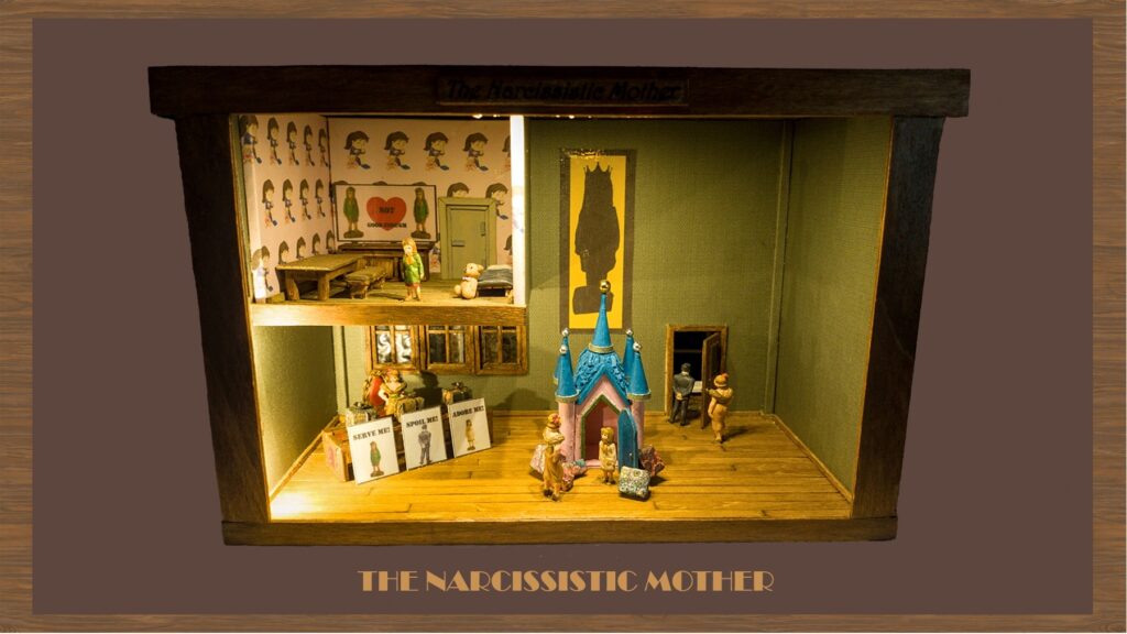 The narcissistic mother or father will make sure that he or she will be in the centre of attention. Children are a mere accessory to fill the void inside which is so characteristic for a narcissistic personality. If the mother (which is the narcissistic person here) has more than one kid, it is not uncommon that the children will be sorted into different categories: the scapegoat or the golden category. Scapegoat children are rejects as they do not fulfill any of the expectations the parent might have – golden children are far more adaptable to the needs of their parent, and will therefore be treated favourably. The outcome for the kids is ultimately the same as both are unable to be who they really are. The other parent is often absent – either avoiding the family situation alltogether or being complicit with the narcissist.